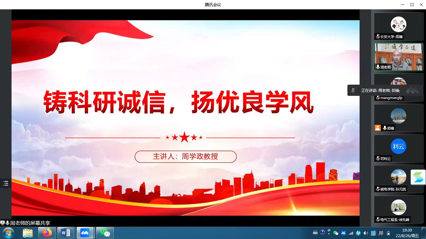 2022年8月26日,公司邀请了北京体育大学的周学政教授作了线上专题报告,公司教师和研究生参加了此次学习。周学政教授以《铸科研诚信,扬优良学风》为题,首先从科学社会学的角度讲述了从公司科学到后公司科学再到新时代,科研工作发生的变化。其次,他从什么是科研诚信、科研不端的表现形式、科研诚信的法律和制度规范、科研不端典型案例等方面系统分析了当前科学研究中存在的学术道德与科研不端问题,讲述了科研诚信是科学研究的基石。最后,他强调科研诚信是科研人员的生命,是科研事业的源泉。并积极倡导广大科研人员坚守科研诚信的底线,大力弘扬优良学风。