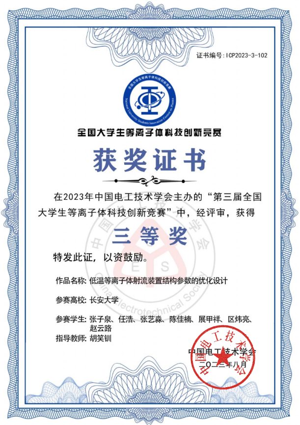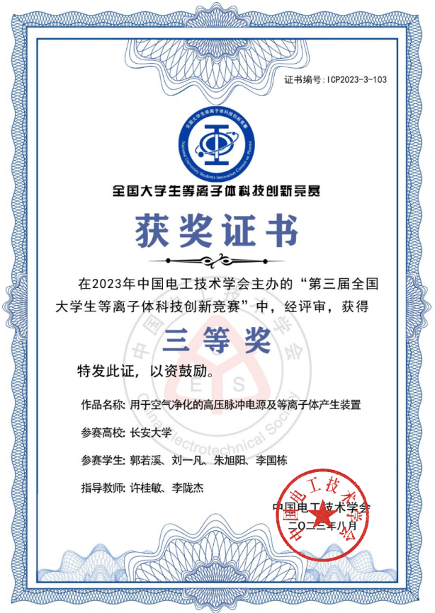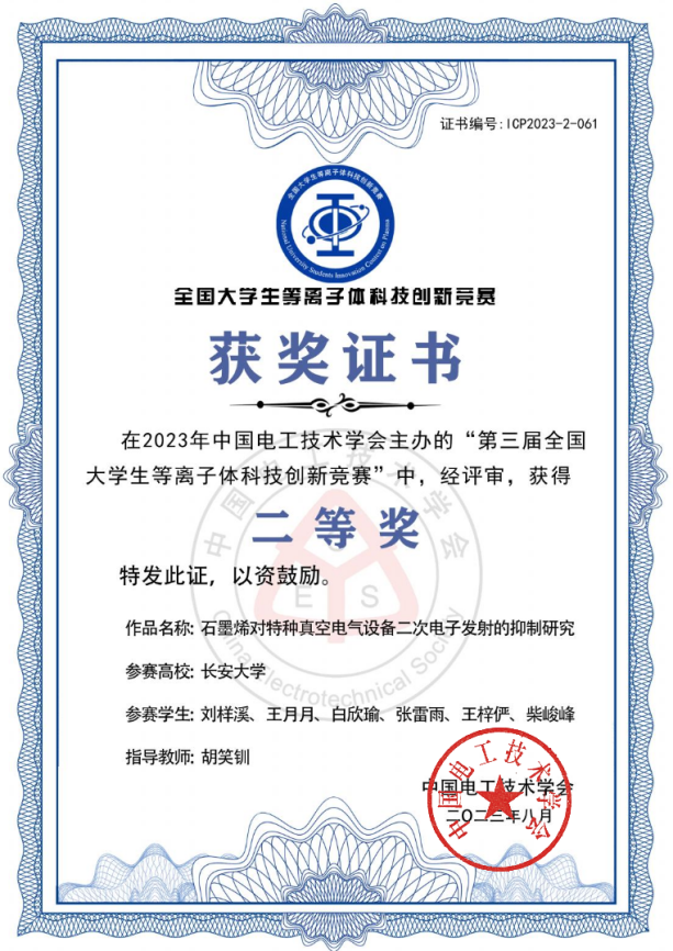 由中国电工技术学会主办的第三届全国老员工等离子体科技创新竞赛决赛于2023年8月在武汉顺利举办。竞赛自2023年4月20日启动以来,共收到全国90余所高校和科研院所的350多件参赛作品。经过严格的网络评审,共遴选出140件作品进入决赛。365英国上市官方网站员工刘样溪、张子泉、孙广哲等人在胡笑钏、许桂敏老师的指导下,经过严格的网络评审、现场评审和答辩评审环节,最终斩获全国二等奖1项、三等奖3项。