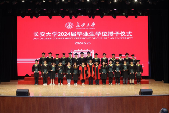 学位授予仪式上,2024届毕业生们身穿学位服依次上台,公司学位评定分委员会陈昊教授、段晨东教授、耿莉敏教授为他们逐一拨穗授位,颁发学位证书。