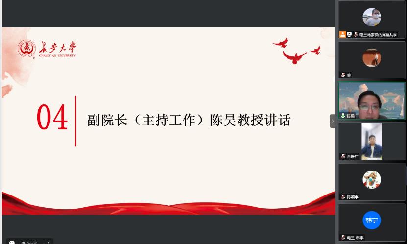 陈昊在讲话中指出,作为新组建的班级要积极向班级引领之星和文明班集体等优秀班级学习,学习好的班级建设经验,创新工作方法,打造品牌特色。他强调,当前疫情防控形势依然严峻,同学们要相信坚持就是胜利,希望就在眼前。同时他还结合当前形势,提出了几点希望和要求。一是深入学习贯彻党的二十大精神,聚焦“双碳”战略和能源安全,用好所学知识,努力为国家能源供给和能源安全贡献智慧和力量。二是严格落实疫情防控政策,树立“自身健康第一责任人”的意识,按时参加核酸检测,如实进行健康打卡,助力防疫事业取得新胜利。三是保障线上学习效果,丰富课余生活,在学习上要“勤请教,多交流”保证学习质量不掉线,在生活中要积极参加小型化、多样化的文体活动,营造良好的班级和宿舍氛围。