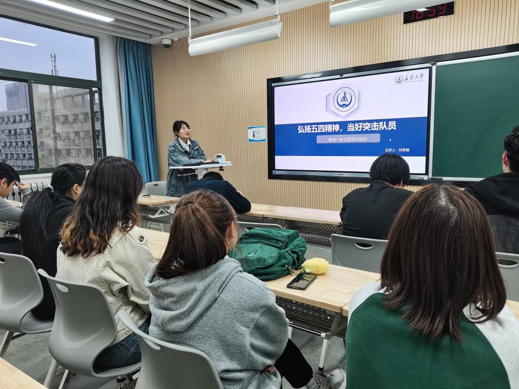 孙梦园带领支部成员共同回顾了百余年前热血青年的顽强斗争,深入了解了党的青年运动史,并鼓励支部成员积极前往革命圣地追忆红色足迹,感悟革命力量。随后她重点诠释了五四精神的特质及新时代赋予五四精神的内涵,呼吁支部成员不忘初心、铭记历史、刻苦学习、笃行不怠。