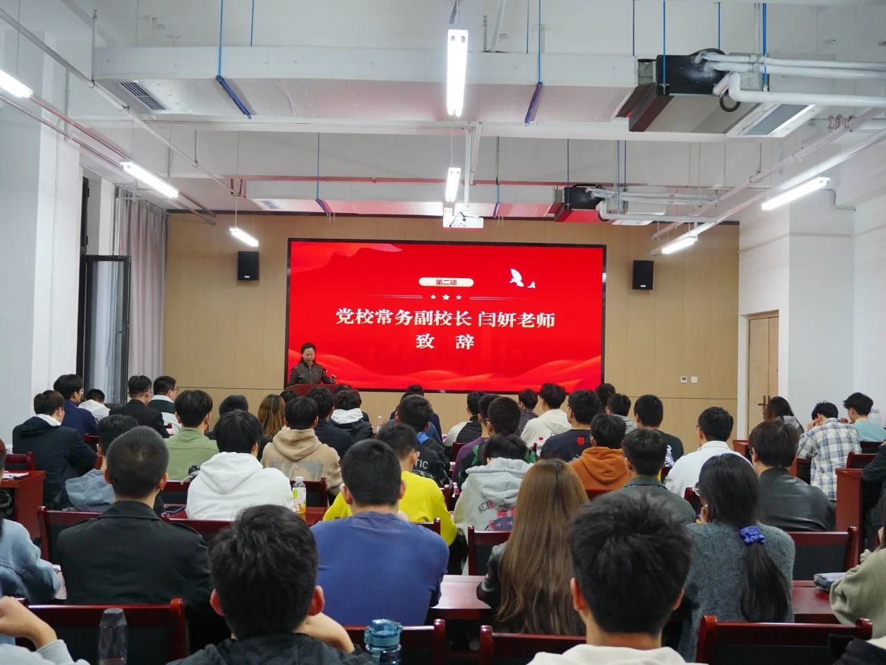 闫妍在致辞中向公司党委对党校工作的重视与支持表示感谢,对参加培训的65名学员表示祝贺,对公司发展党员培训工作给予了充分肯定与高度评价。她对全体学员提出了四点希望与要求:一是要坚定理想信念,铸牢对党忠诚;二是要珍惜培训机会,提高党性修养;三是要践行知行合一,挺膺担当职责;四是要勇于砥砺奋斗,发挥先锋模范作用。