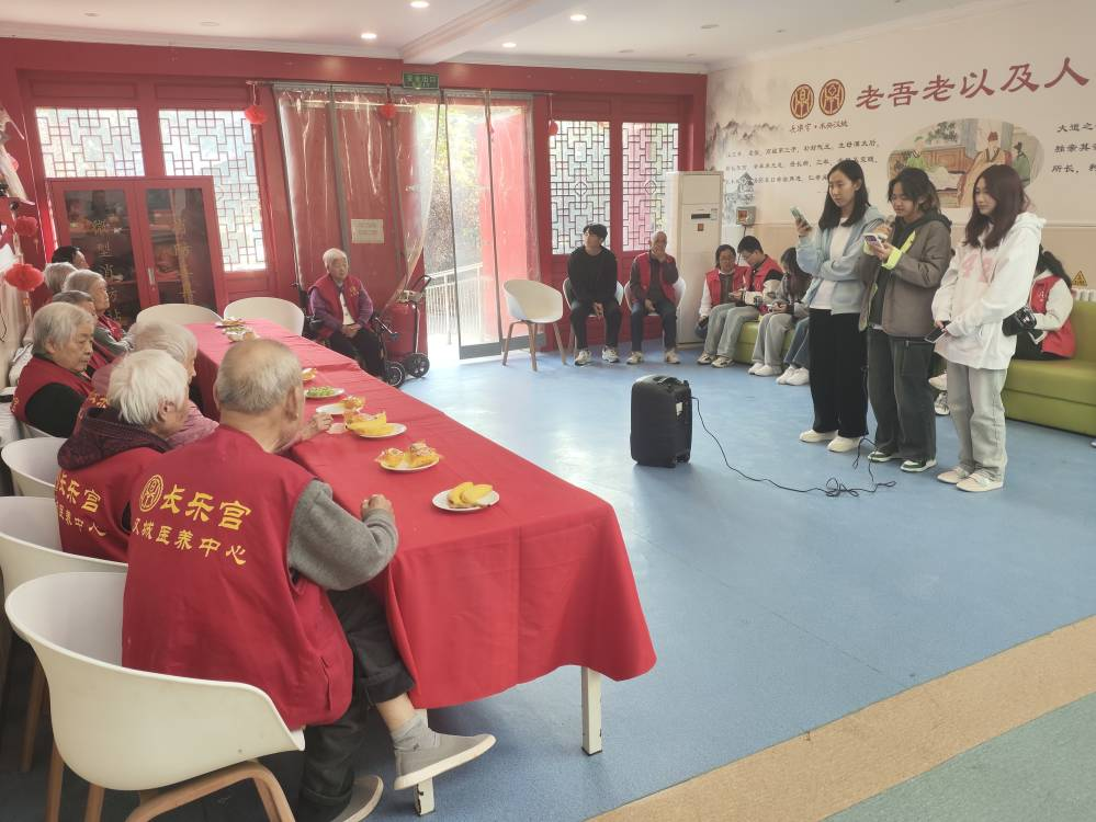 表演结束后,志愿者们走进老人身旁,与老人们聊天交流。在志愿者的陪伴下,老人们无不敞开心扉。一位94岁高龄的老奶奶讲述了当年响应国家号召投身三线建设的峥嵘往事;一位老爷爷分享了近日子女前来看望的喜悦;也有几位老人诉说患病的痛苦,在志愿者们的细心关怀宽慰下得到些许慰藉。志愿者们在欢声笑语中陪老人们度过了一个愉快的下午。