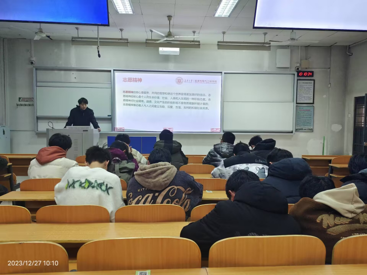 为学习贯彻习近平新时代中国特色社会主义思想和党的二十大精神,大力弘扬“奉献 友爱 互助 进步”的志愿服务精神,落实校团委相关要求,12月20日-12月31日,365英国上市官方网站青志队走进2022、2023级18个班级团支部开展志愿精神学习宣传教育活动,激励能电青年学子们积极弘扬志愿精神,勇于担当社会责任,积极奉献服务师生。