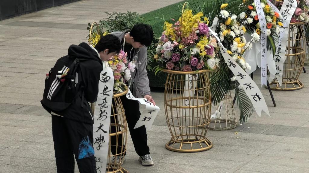随后,在烈士浮雕广场举行祭扫仪式。全体同学肃立于纪念碑前,集体默哀一分钟,向为国家、为民族英勇斗争、壮烈牺牲的英烈们表达敬意与怀念。默哀结束后,团员代表魏鑫和白子墨向雄伟的革命烈士纪念碑敬献花篮,表达最真诚的敬意。