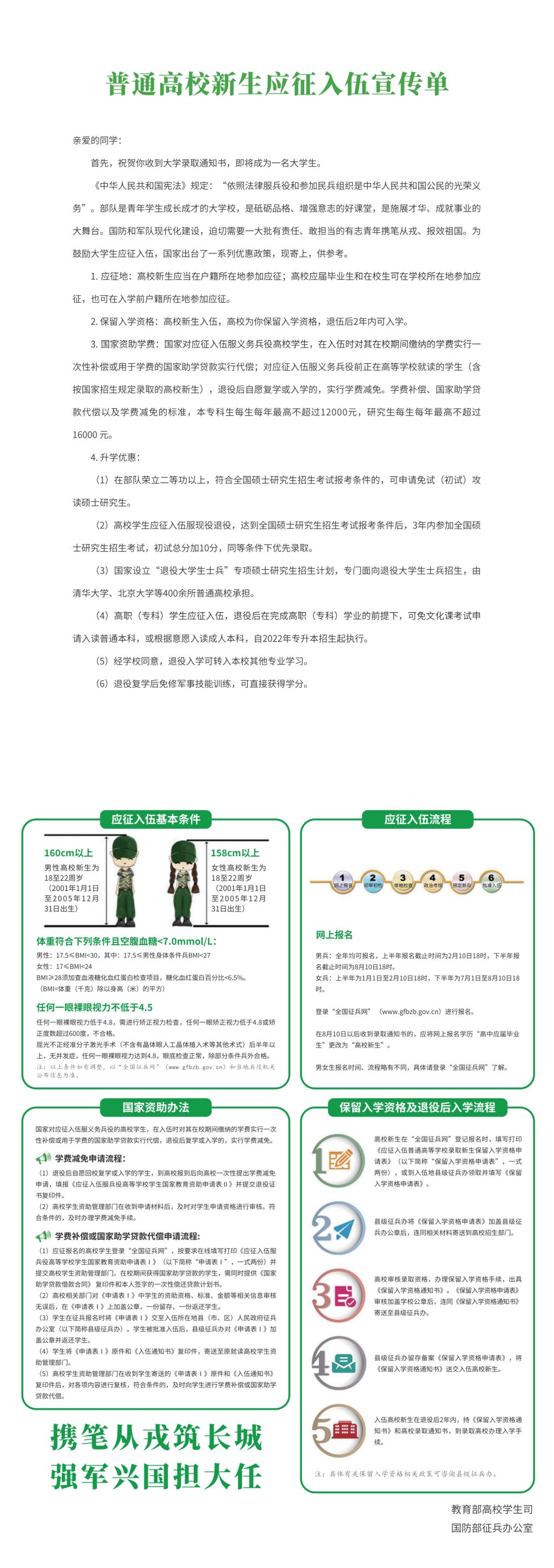 2023年《大学新生应征入伍宣传单》
