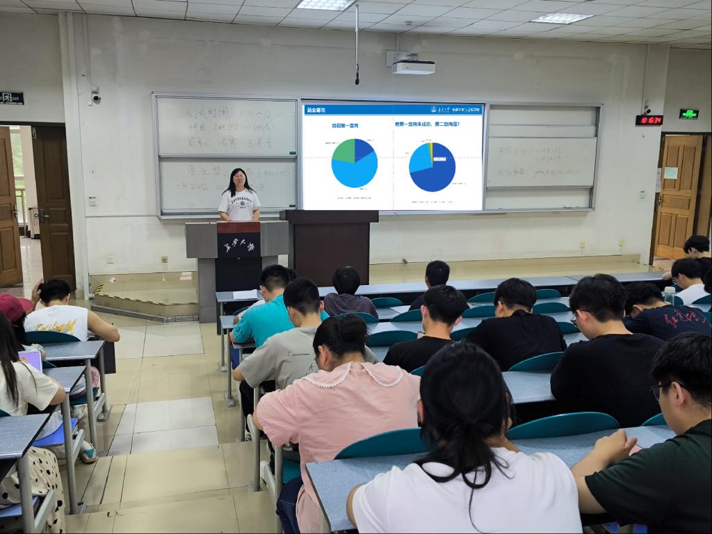 刘欣针对近期开展的员工就业意愿统计情况展开分析。目前,年级大多数同学选择继续升学深造,且选择本校的人数占升学总人数的一半以上。刘欣对近年的就业升学的形势变化进行了分析,建议同学们抓住今年9月“招聘黄金期”先签一份工作;同时也鼓励考研同学认真备考,争取考上更高层次的公司。此外,她建议选择就业的同学们,抓住暑期参与实习,完善简历,提升自己的工作经验。她希望大家明确自我认知,合理确定目标并及早开始努力。