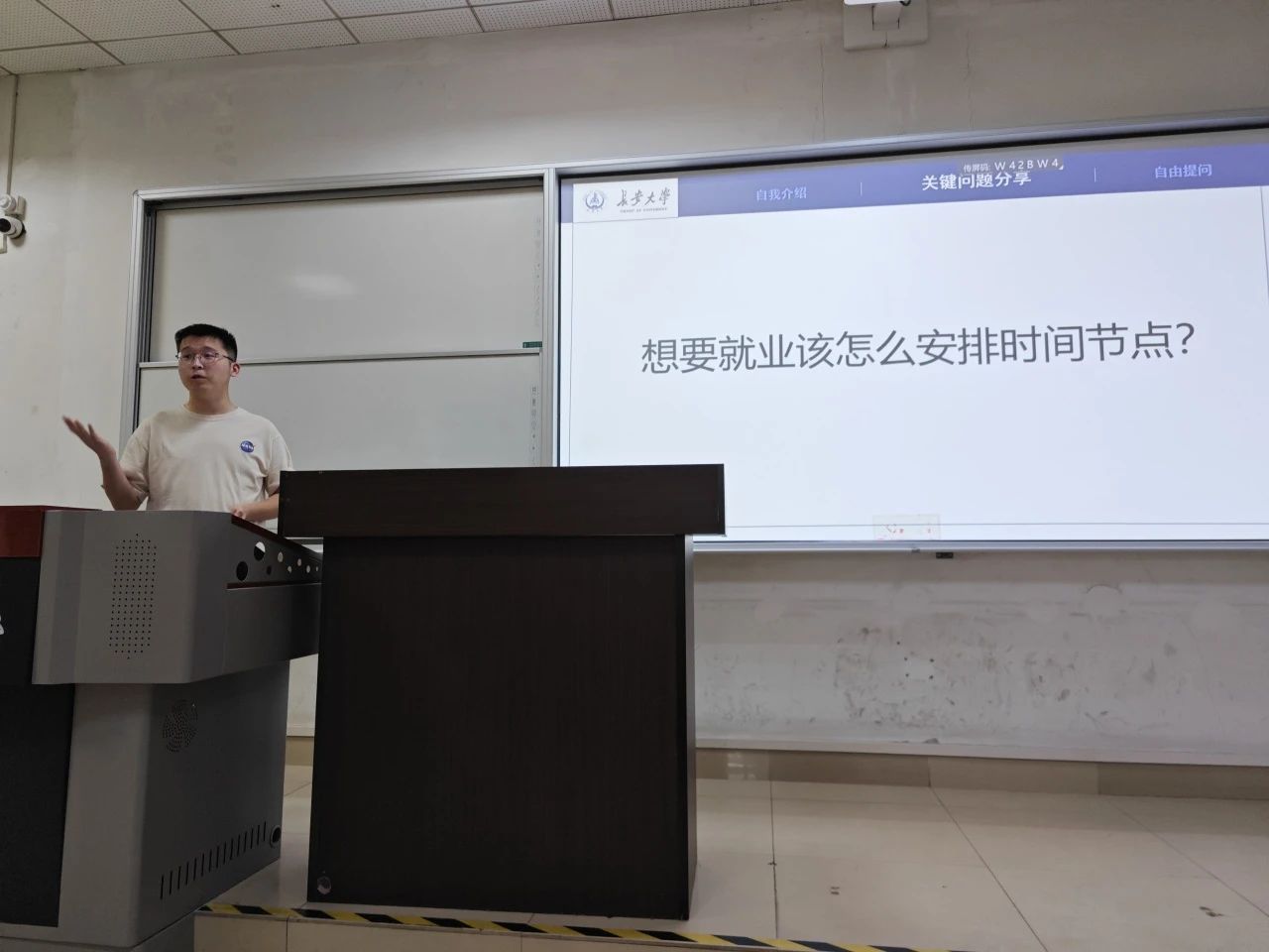 高辉围绕“考研or工作,为什么选择工作?”“工作一定会比读研差吗?”“什么是管培生?可信吗?”“是否有必要实习?”等8个关键问题出发,分享了自己选择工作而非考研的理由,对就业过程中的常见误区进行了剖析,并就如何获取企业信息、招聘信息、简历制作、面试及签约过程中的注意事项进行了深入讲解。李曦则从个人选择的角度出发,强调了信息获取、明确目标和专心备考的重要性,鼓励同学们认真思考“我想要什么,我该做什么,我要做到什么程度”,以实现个人职业发展。袁智分享了在面临就业选择时应考虑的因素,除了公司的当前状况外,更应注重未来发展。他还特别指出了简历制作的重要性,建议同学们丰富自身的校园经历,并将其有效地展示在简历中。
