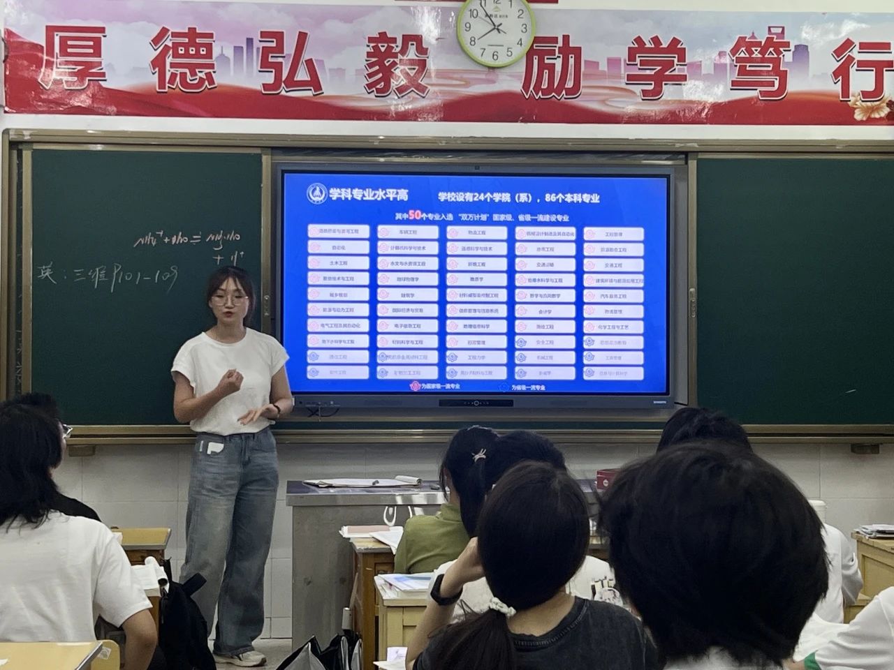 杨雄政就“学习方法和学习经验”进行了分享,他强调了个性化学习节奏的重要性,以自身经历为例,分享了高中各学科的学习心得和一二轮大复习的注意事项,鼓励大家用汗水书写无悔的青春。接着他向大家展现了大学的多彩生活,从丰富多彩的社团活动到紧张刺激的学术竞赛,从自由开放的学术氛围到严谨求实的科研精神,激发同学们对大公司园的无限憧憬。随后他结合365英国上市公司招生政策,对高考录取流程和志愿填报进行了细致的讲解,使同学们通往大学梦想之门的路径更加明晰。