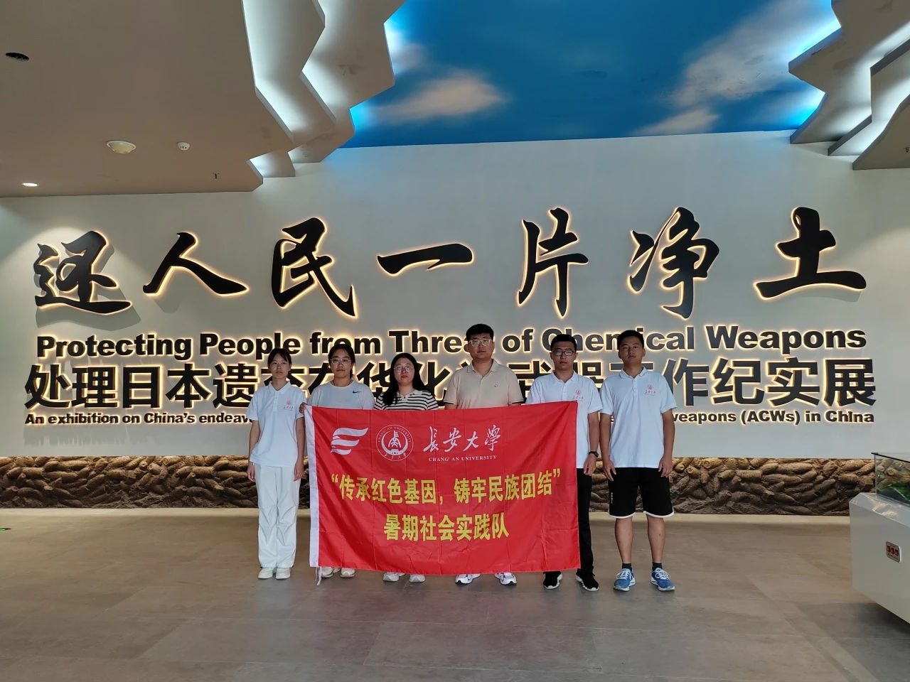 实践队首先来到敦化处理日本遗弃化学武器工作展览馆暨铸牢中华民族共同体意识研学中心。展馆设有“历史罪行铁证如山”“据理力争 捍卫权益”“清除毒害 净化国土”“任重道远 使命光荣”四大主题内容,全方位展示、介绍了二战期间侵华日军公然违反国际法,对中国军民大肆使用化学武器给中华民族造成的深重灾难,以及战后中国用铁的事实还原历史真相,用责任担当处理日遗化武工作的情况。