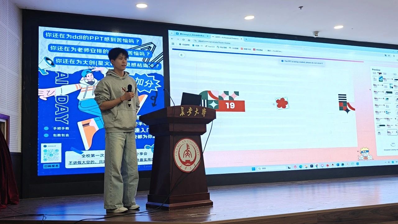 此次活动重点在于强化同学们高效运用 AI 的本领,使其快速掌握核心技能,并引导在 PPT 制作、学术研究等方面有效应用,以提升学习与工作成效。