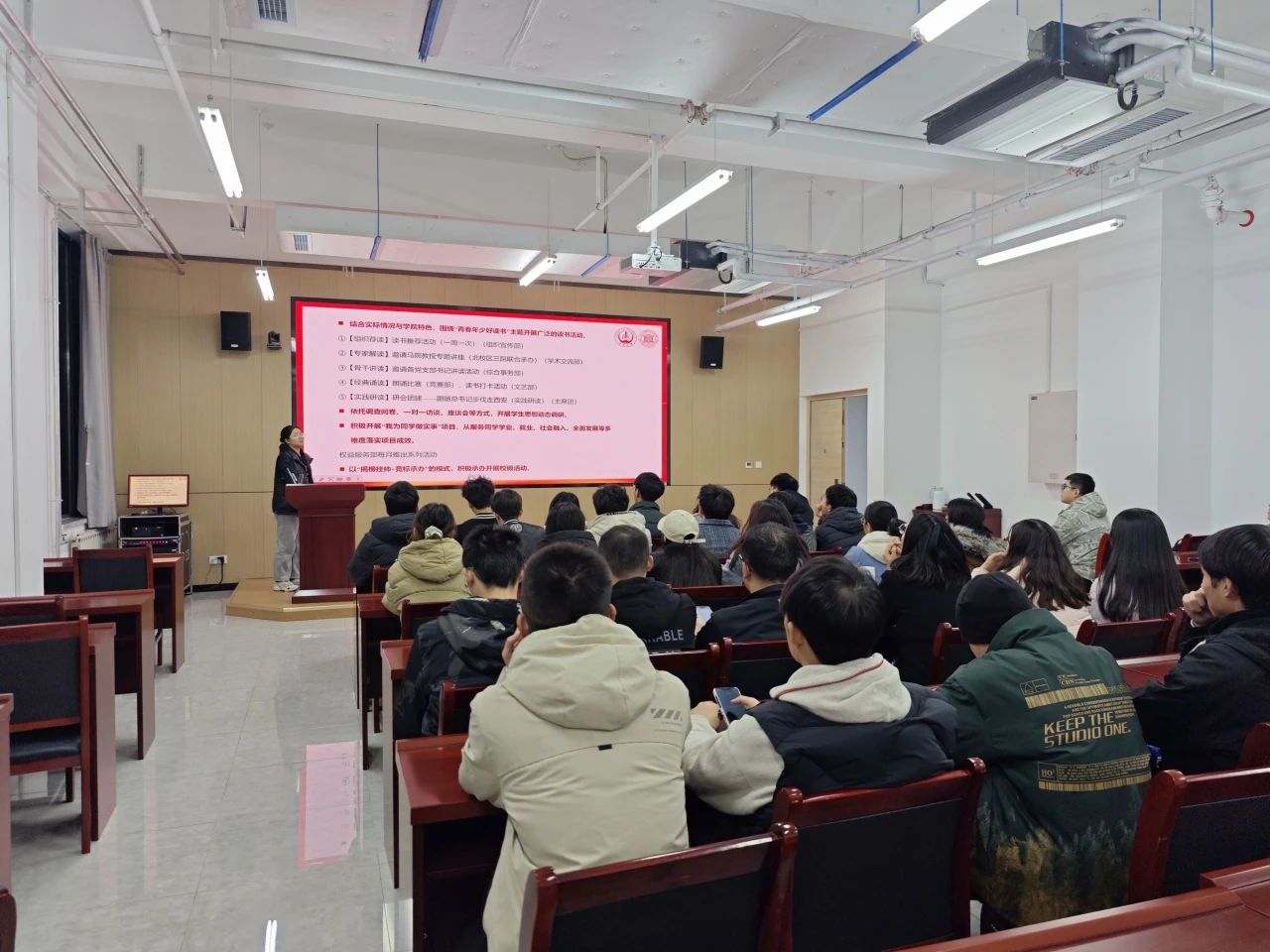 随后,全体参会人员共同观看了《习近平与老员工朋友们》系列视频。视频中习近平总书记与老员工们亲切交流互动的场景,使大家备受鼓舞,深刻感受到总书记对青年一代的殷切期望与深切关怀。这不仅激励着研会成员们在学习与工作中勇挑重担、砥砺前行,更增强了他们为广大同学服务的使命感与自觉性。