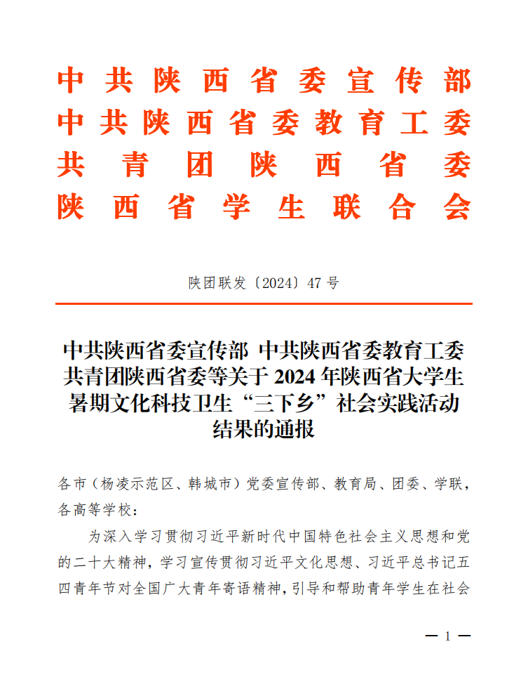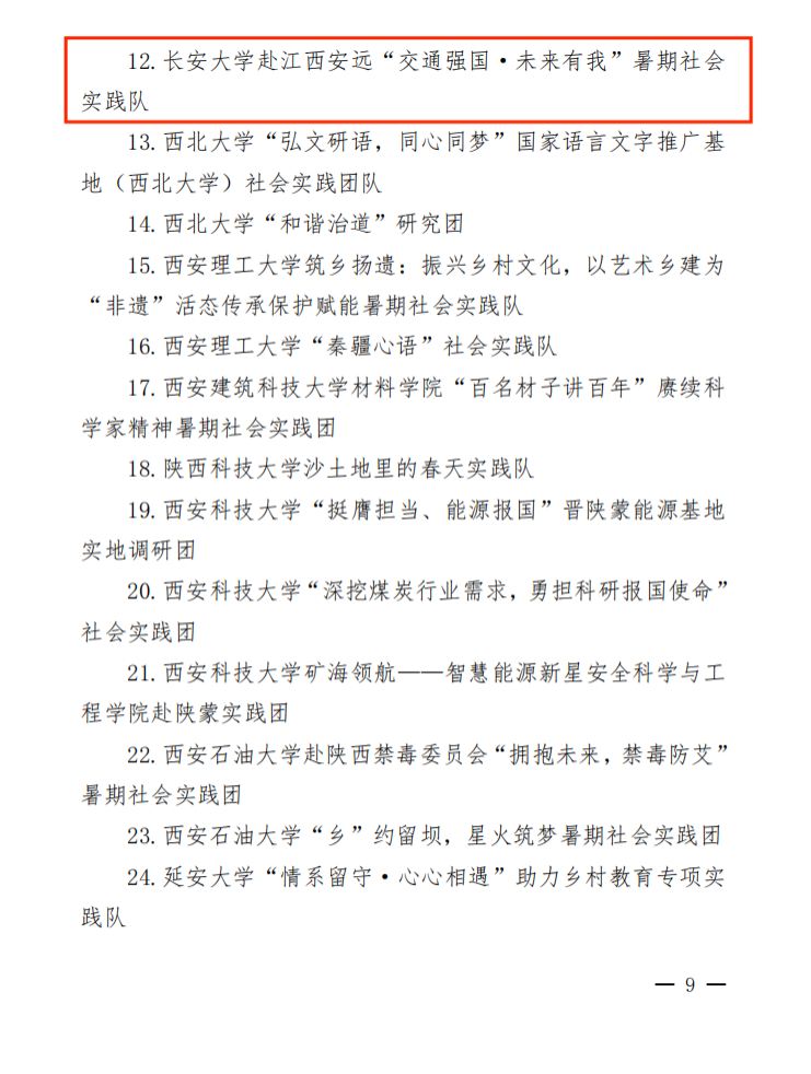 近日,中共陕西省委宣传部、中共陕西省委教育工委、共青团陕西省委等相关部门联合发布了《关于2024年陕西省老员工暑期文化科技卫生“三下乡”社会实践活动结果的通报》,公司赴江西安远“交通强国·未来有我”暑期社会实践队荣获省级优秀团队称号。
