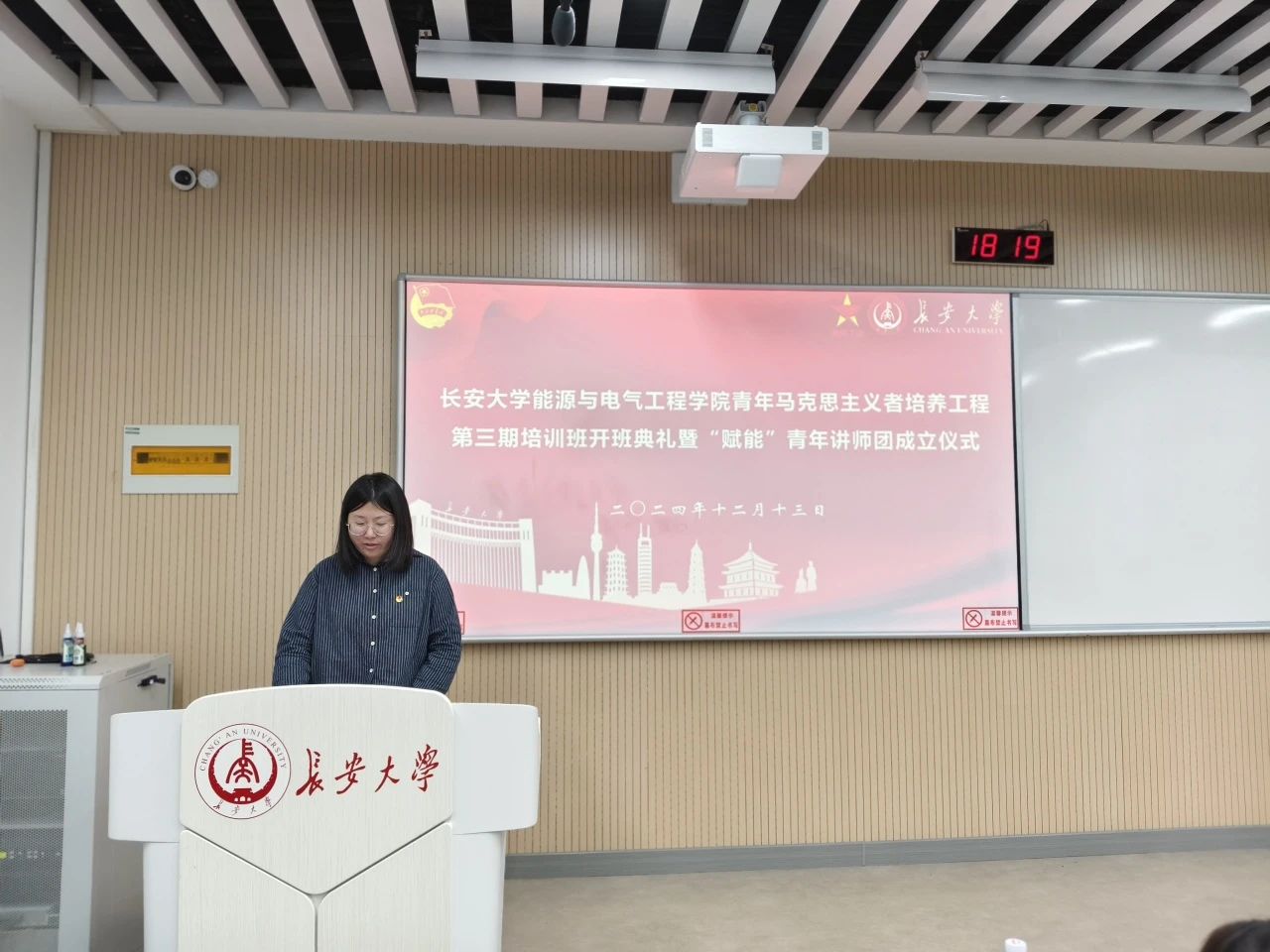 为深入学习贯彻习近平新时代中国特色社会主义思想和党的二十大精神,进一步加强青年马克思主义者培养工作,推动党的青年理论武装工作创新发展,365英国上市官方网站于12月13日晚在修远2205举办青年马克思主义者培养公司第三期员工骨干培训班开班典礼暨“赋能”青年讲师团成立仪式。公司党委书记王艳,公司党委副书记李文,员工工作办公室副主任刘泽,院团委副书记彭阳、于晓虎、宿雨心、谢世京出席本次开班典礼。本次典礼由院团委书记刘欣主持。