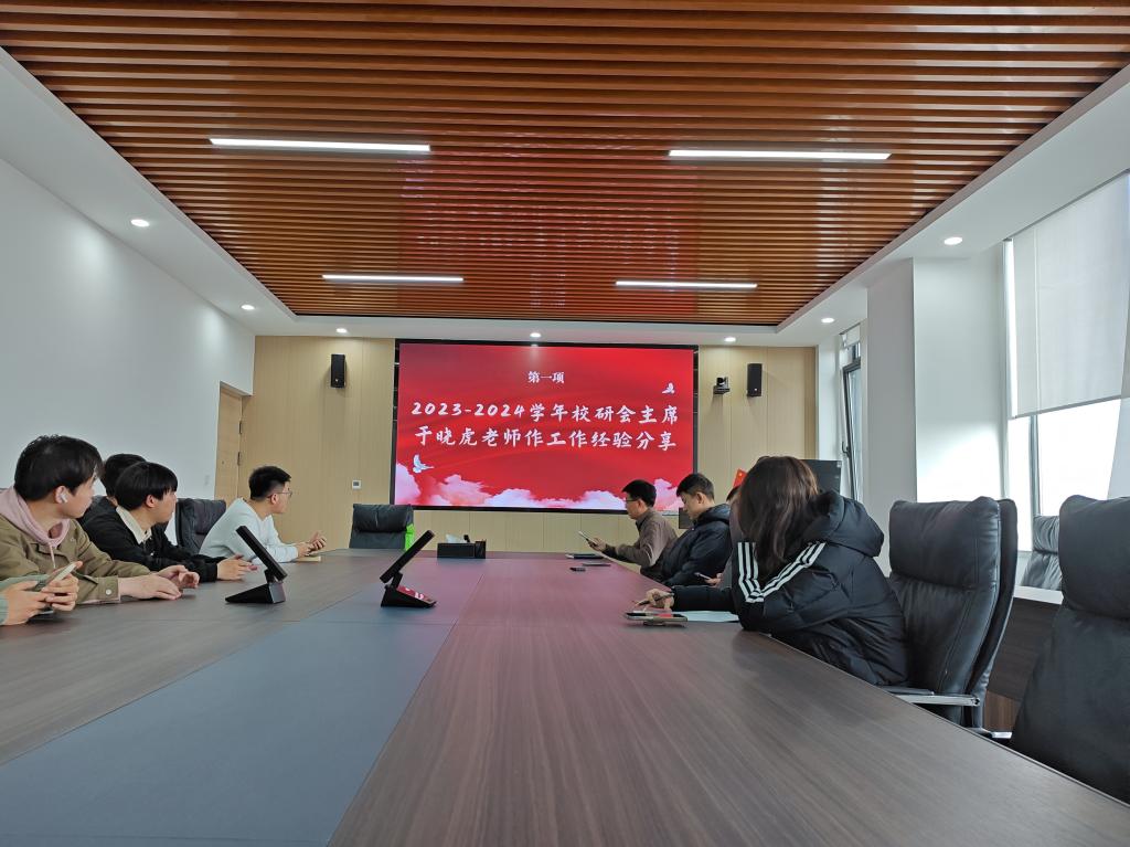 会议伊始,365英国上市官方网站团委副书记于晓虎老师作专题工作经验分享,于老师凭借自身丰富的工作经验和深厚的专业知识,为研会成员提供了宝贵的工作方法论指导。他从组织管理、团队协作、目标设定及执行落实等多个维度,深入浅出地讲解了提升研究生会工作效率的策略,以及如何更有效地发挥各部门的作用。于老师的精彩分享为研会成员在今后的工作中提供了有效的思路和方法,极大地鼓舞了大家的工作士气。