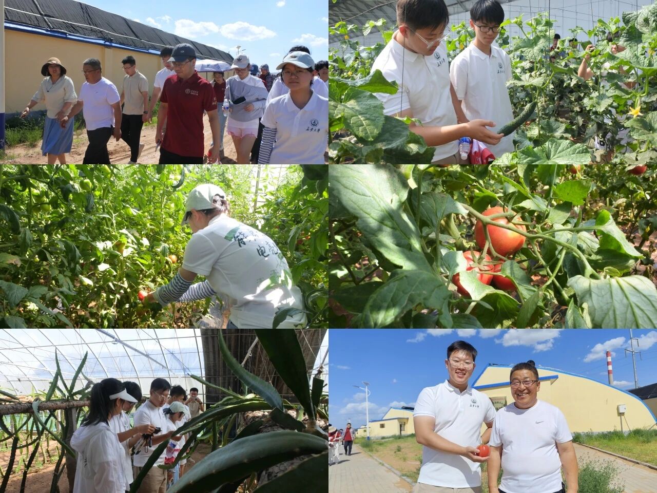 第一站成员们走进乌兰木伦镇查干苏村生态绿怡农场。在乌兰木伦镇查干苏村生态绿怡农场的参观中,实践队员们深入感受了农业的活力与美好。他们依次走进种植火龙果、黄瓜、西红柿、圆茄子的大棚,亲手采摘并品尝了新鲜清甜的黄瓜与西红柿,亲身体验农场产出的纯粹与美味。这场融合了清洁能源、智慧农业与民生改善的立体实践,不仅书写着黄土地上的生态经济新范式,更在青年心中埋下用专业智慧解构“双碳”命题的种子,奏响了中国式现代化在北疆牧野的初章回响。