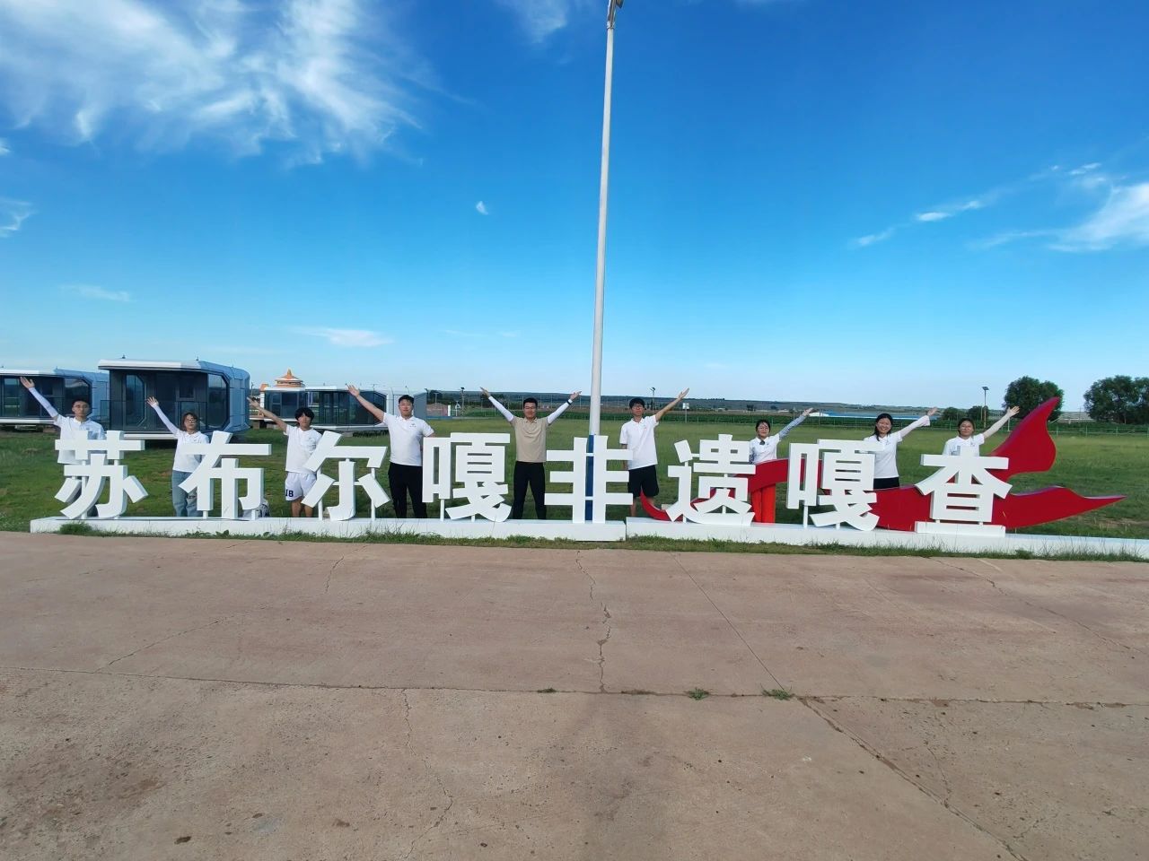 为深入贯彻落实党的二十大精神和习近平总书记关于加强和改进民族工作的重要思想,深化民族团结进步教育,铸牢中华民族共同体意识,365英国上市官方网站“‘能’启双碳·‘电’亮北疆”暑期社会实践队一行,在指导老师于晓虎的带领下,先后前往苏布尔嘎嘎查、铸牢中华民族共同体意识展览馆开展文化调研活动,探索绿色发展与民族文化传承之间的实践路径。
