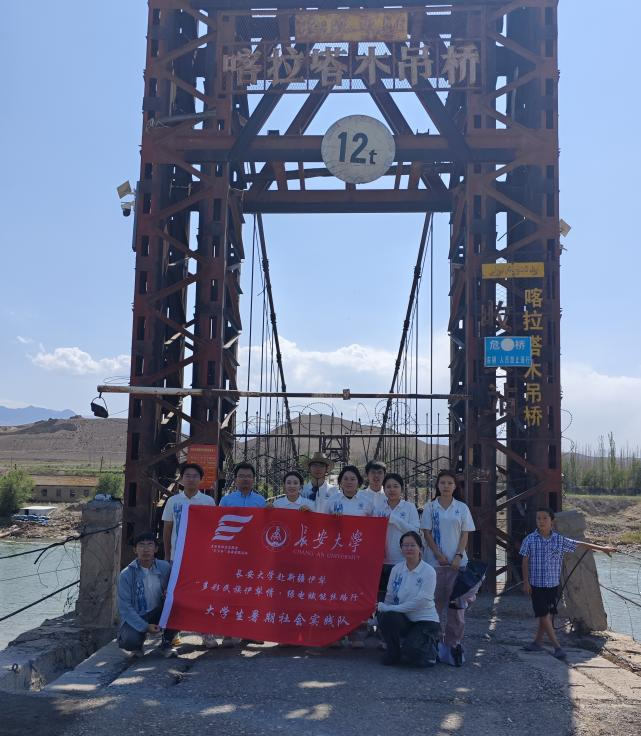 7月26日上午,实践队来到坐落于伊宁县的喀拉塔木吊桥。这座横跨伊犁河的吊桥,于1987年正式建成通车,至今已有近40年历史,虽已封闭不再使用,却仍承载着伊犁河谷的发展记忆。这是一座横跨伊犁河的私营股份制吊桥,建成后极大地方便了两岸百姓,让渡船成为记忆,使过往车辆少绕100多公里路。队员们驻足桥头,听当地向导讲述吊桥曲折艰辛的修建故事——从最初简陋的木桥到耗费两代人心血的4次改建加固。桥的变迁背后,是乡村基础设施的完善,是牧民生活的改善,更是党和政府对边疆地区发展的持续投入。