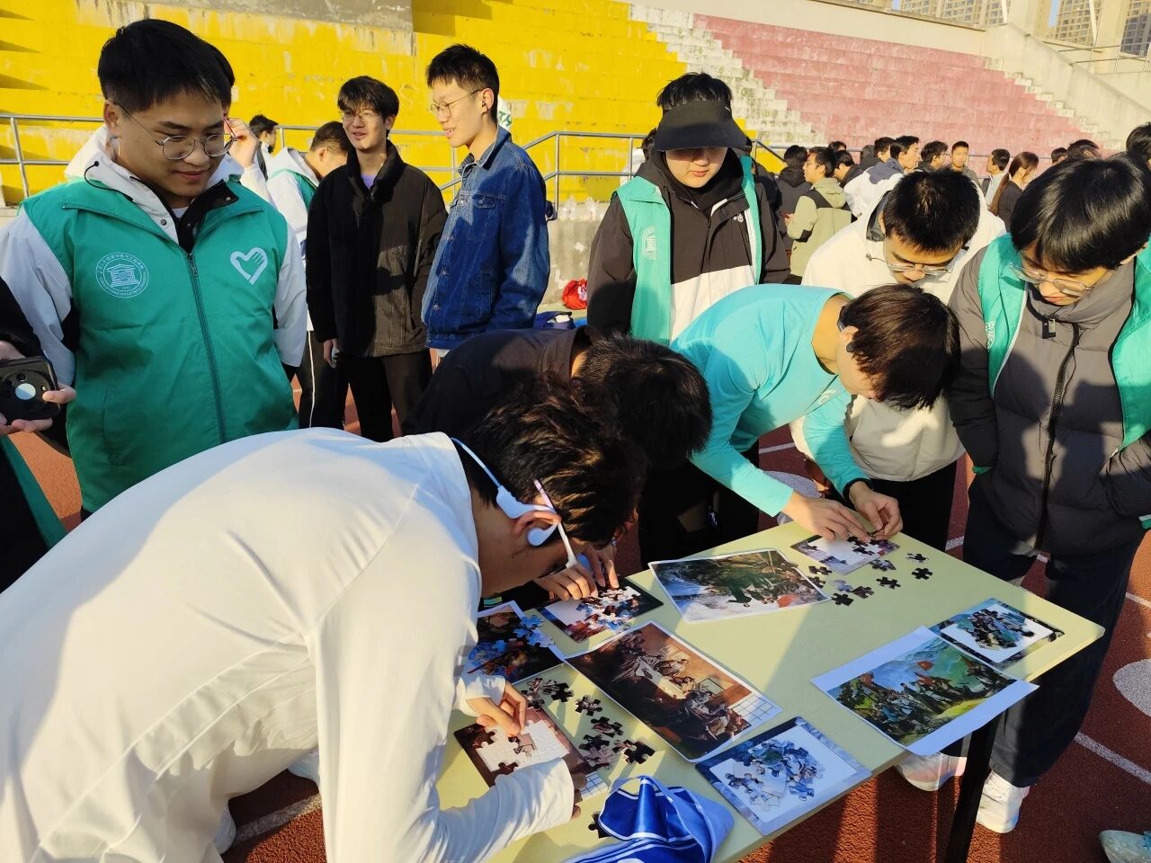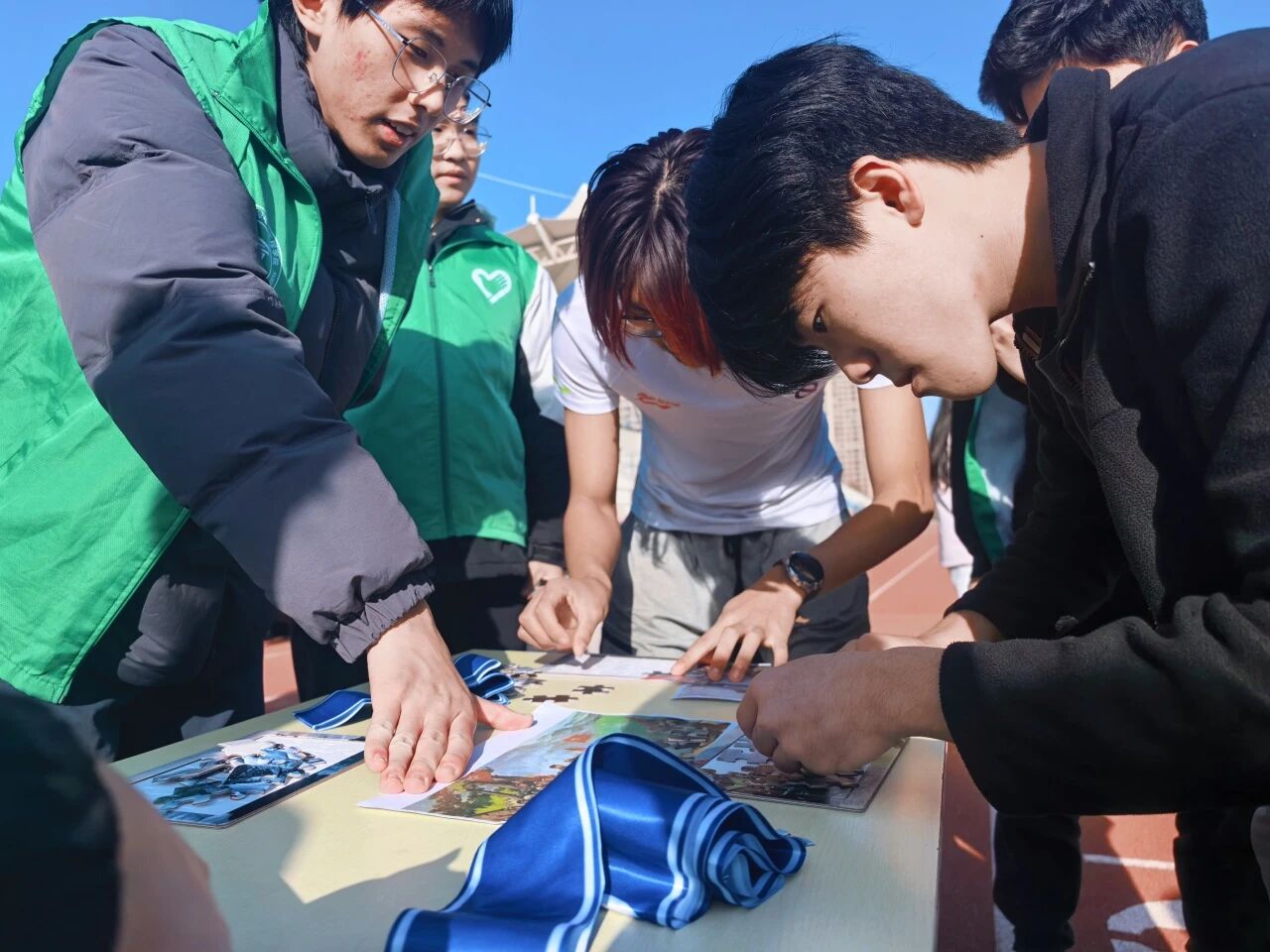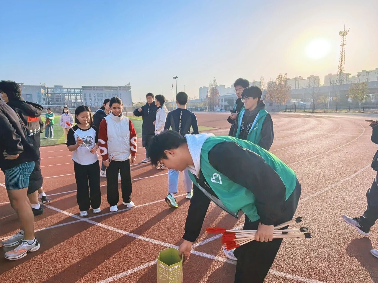 从清晨七点半开始,能电青志队的志愿者们便已全员到岗,有条不紊地开展物资分发、队伍引导、赛前检录等工作。他们身着统一志愿服装,精神饱满、笑容温暖,成为赛场边最动人的风景。在检录点,他们认真工作,为选手提供及时帮助;在挑战区,志愿者耐心讲解规则、维护秩序;在接力区,他们精准计时、协助交接。无论是引导参赛者完成“S型绕杆跑”,还是协助拼图任务、组织投壶挑战,志愿者们始终以专业、热情的服务,保障了赛事的有序进行,赢得了选手和老师的一致赞誉。