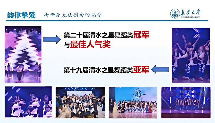 在公司“渭水之星”比赛中,王睿涵与街舞社的朋友们共同编排了《逆鳞》《Longing for You》两个街舞作品,分别取得了第十九届“渭水之星”舞蹈类亚军和第二十届“渭水之星”舞蹈类冠军,其中《Longing for You》还获得了第二十届渭水之星总决赛“最佳人气奖”。