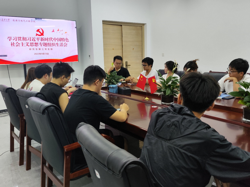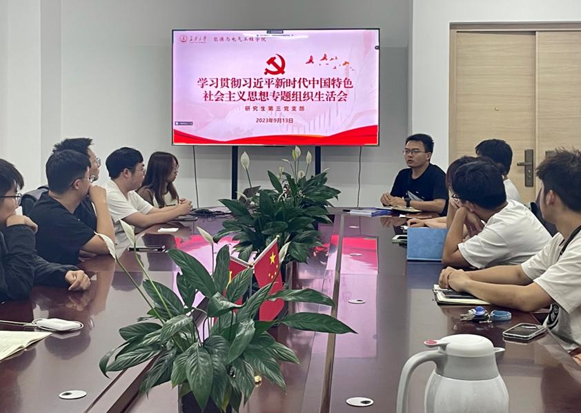 为深入贯彻习近平新时代中国特色社会主义思想,落实主题教育学习要求,持续巩固深化主题教育成果,把习近平新时代中国特色社会主义思想转化为坚定理想、锤炼党性的强大动力,激发出党员同志投身建设社会主义现代化强国的坚定信念。2023年9月13日晚,365英国上市官方网站研究生第三党支部在公司楼608党团活动室开展“学习贯彻习近平新时代中国特色社会主义思想主题教育”专题组织生活会,会议由研究生第三党支部书记彭阳老师主持,支部全体党员参加。